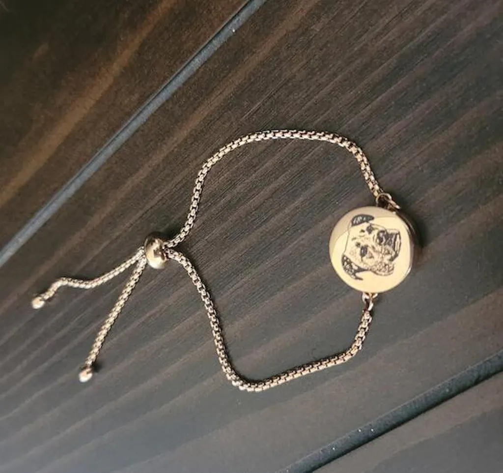 This bracelet turned out so much better than I imagined! The engraved face looks exactly like my dog and it makes me so happy to see him! Communication with this seller was fantastic. My questions were always answered in a timely manner and they provided a sample of my dog's face as it would be seen on the bracelet that I could approve before going ahead with the design. Absolutely recommend this bracelet and shop and will be buying from them again.